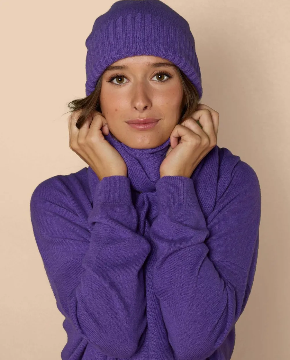 Bonnet en cachemire double fil. Taille unique.