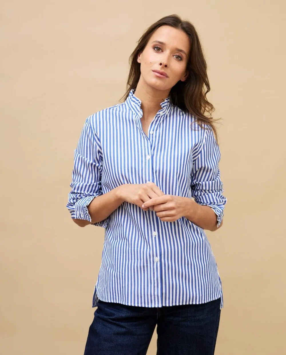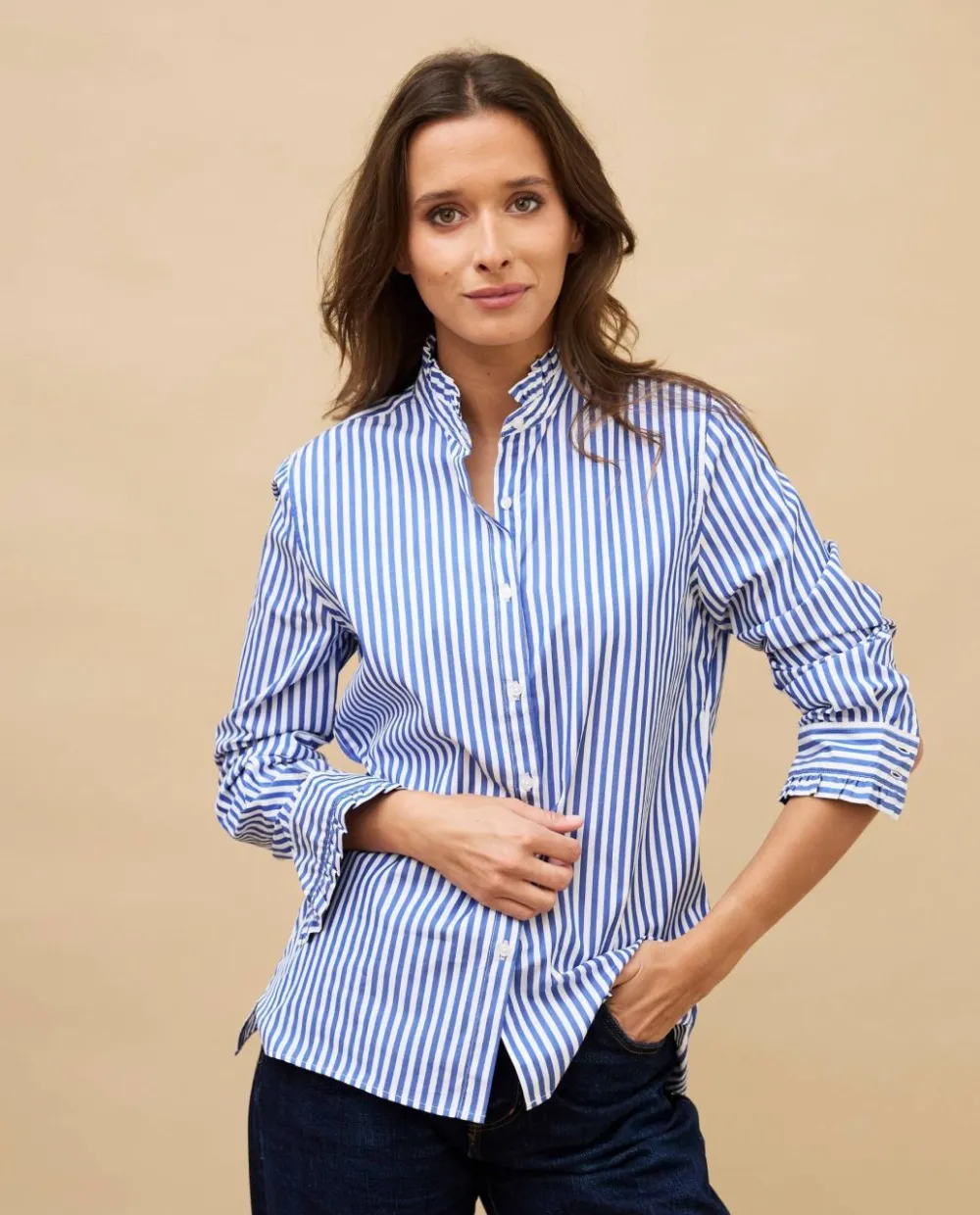 Acanthe Chemisier col et poignets à volants large rayure bleue largerayureblanc/bleu Discount