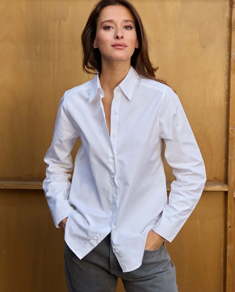 Acanthe Chemise ajustée col italien poignet mousquetaire popeline blanche PopelineblancheN12 Hot