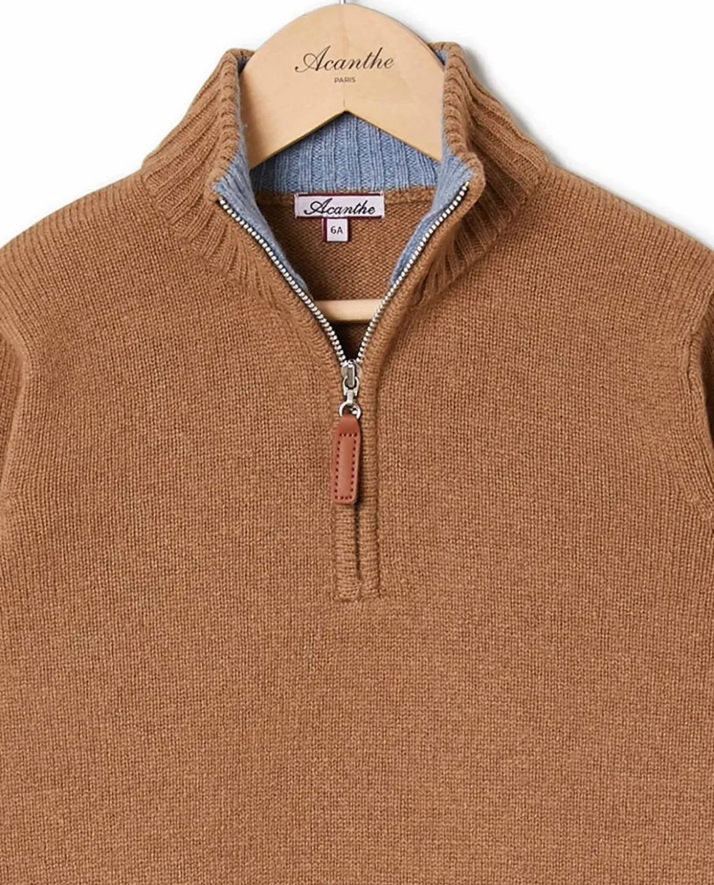 Pull en jersey. Col zippé avec intérieur contrasté. Manches longues. Finition bord-côtes. Pure laine d’agneau.