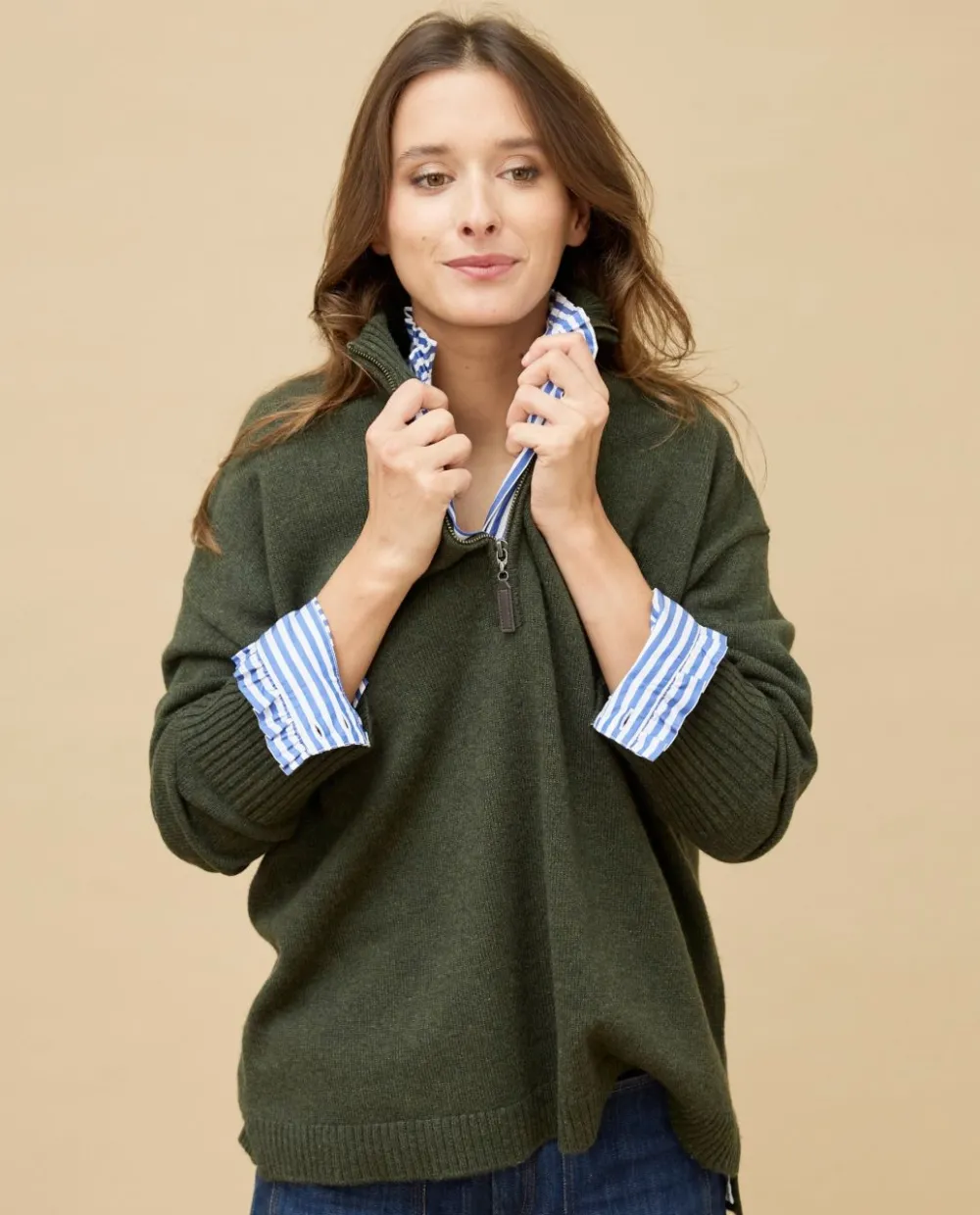 Acanthe Pull col zippé loose 100% cachemire Kaki Hot