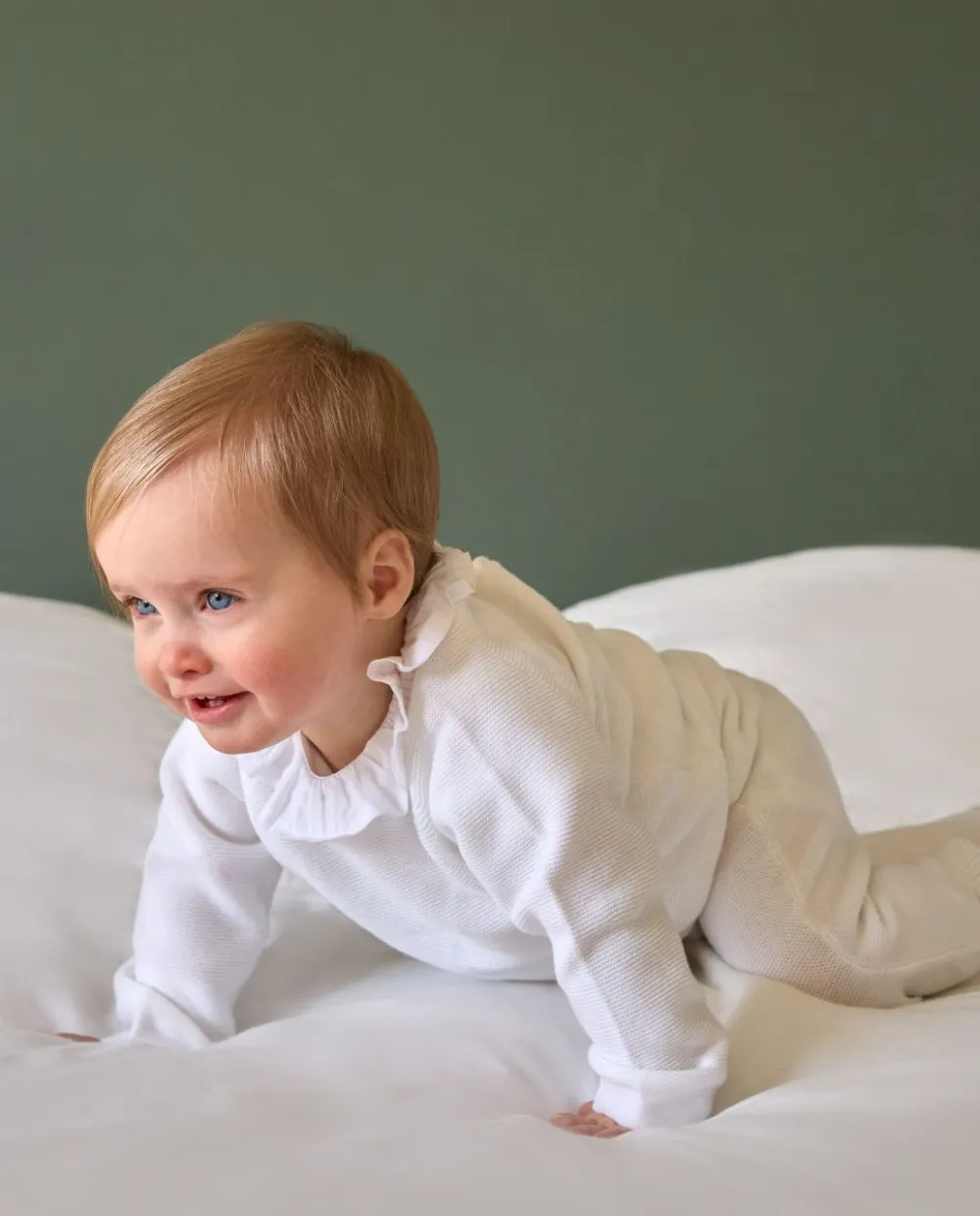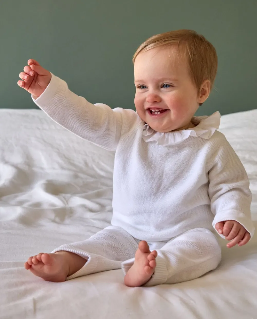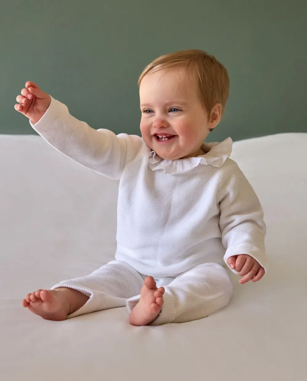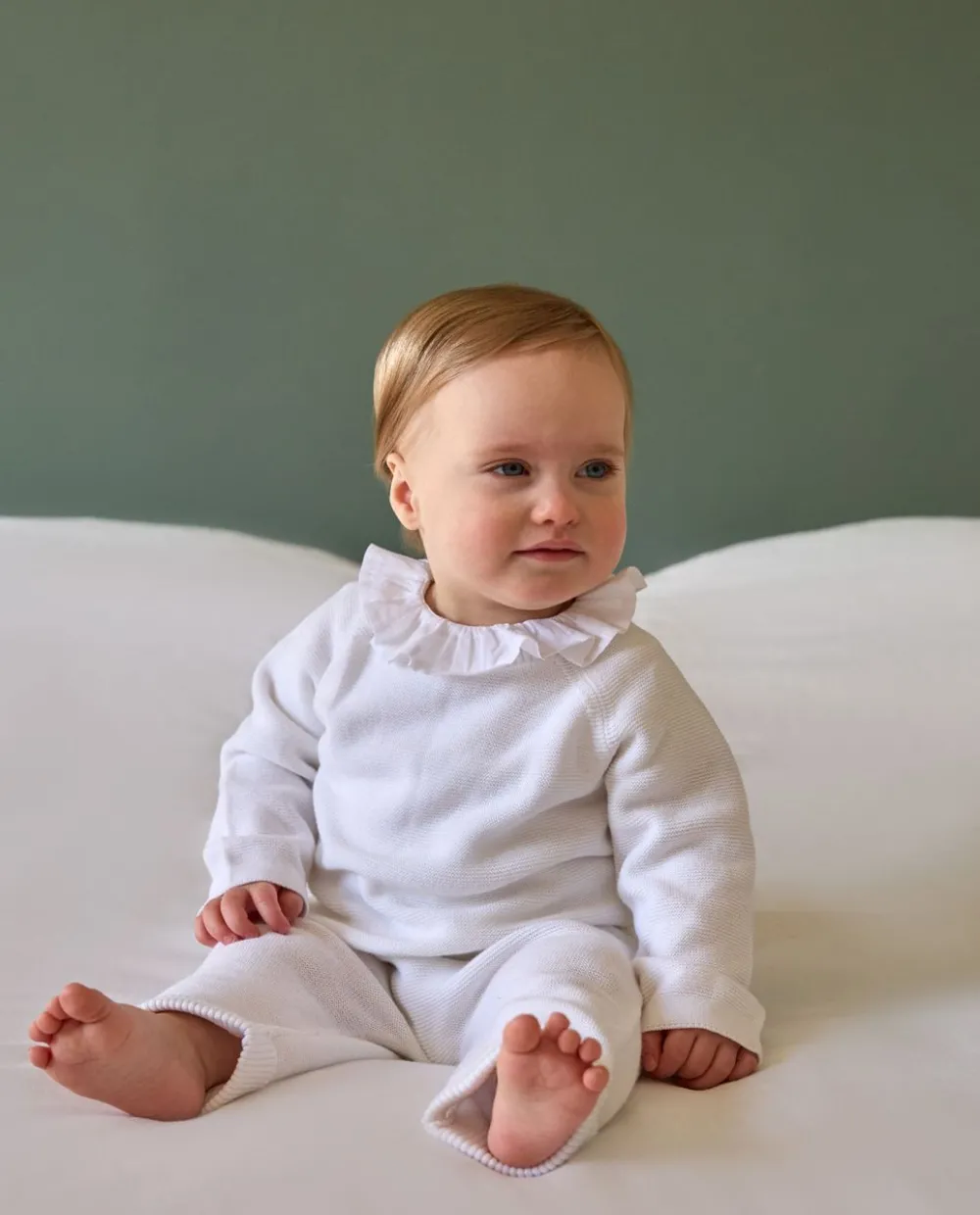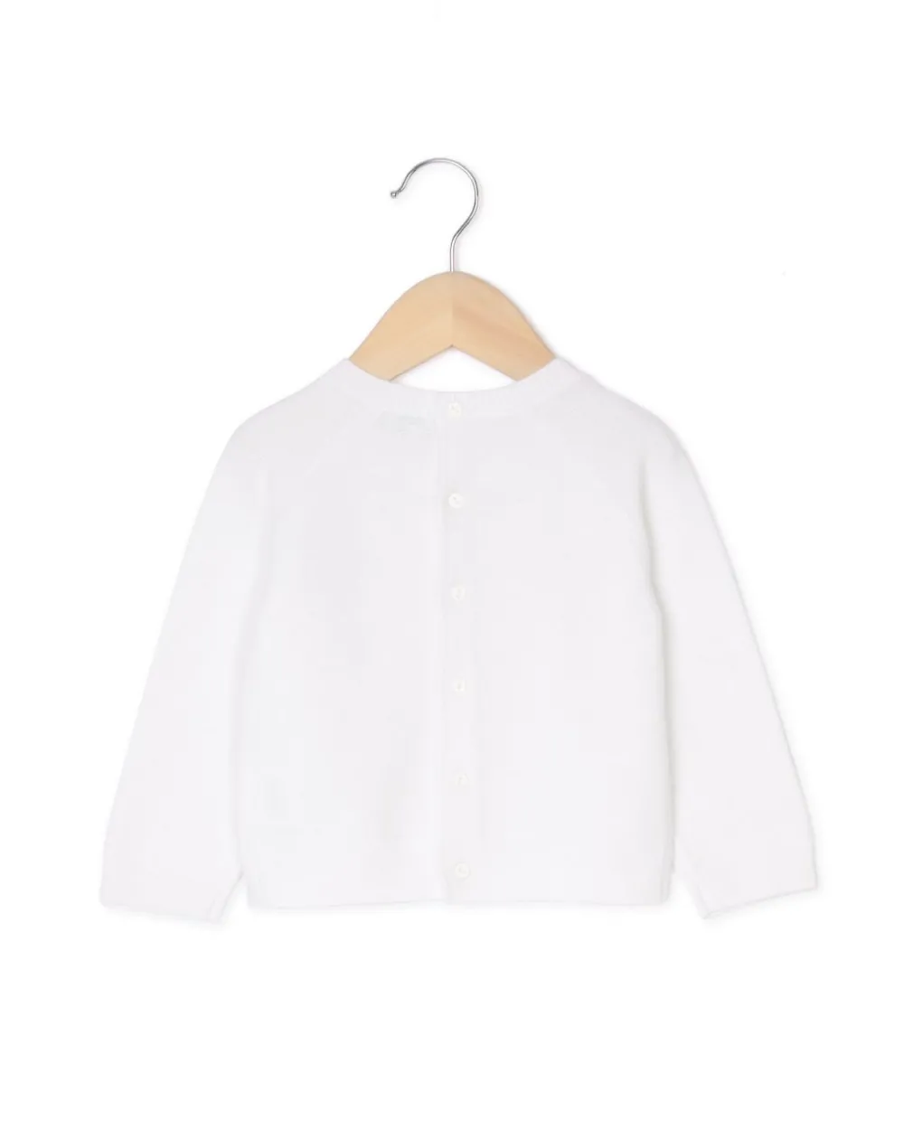Pull col rond boutonné au milieu dos. Pur coton. On aime l’esprit ‘fait maison’ de ce pull tricoté en point mousse. Il peut se coordonner avec les pantalons en point mousse. Le coton est une fibre vég