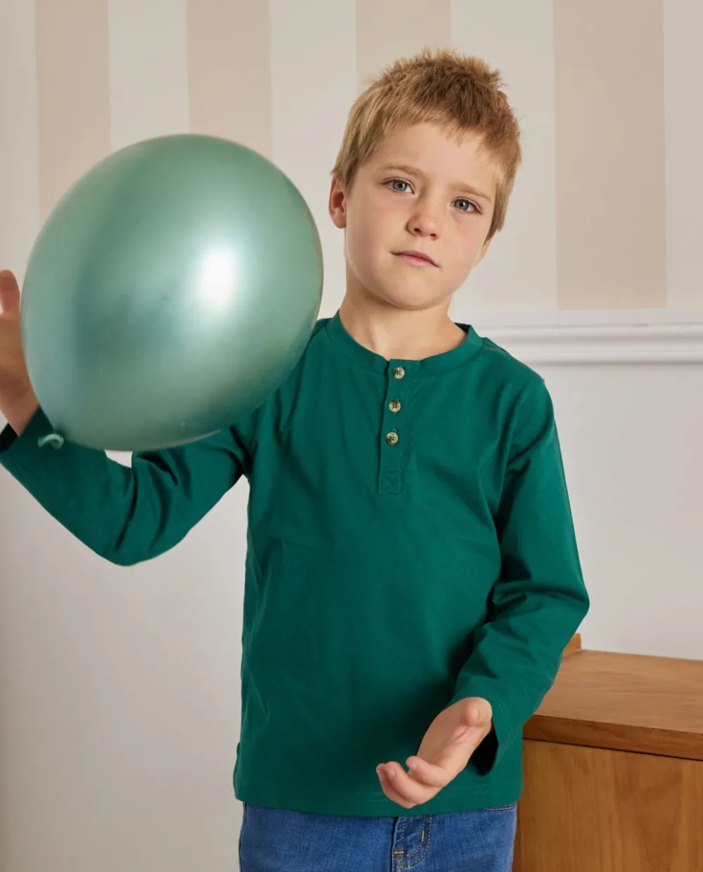 Tee shirt manches longues en maille jersey coton. Encolure ronde boutonnée.