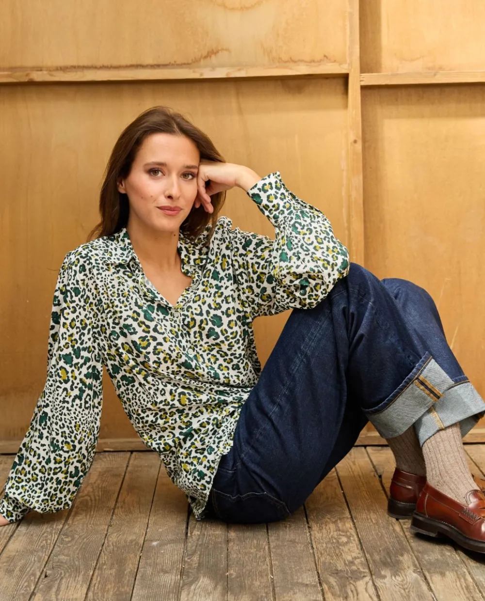Acanthe Blouse fluide manches bouffantes imprimé panthère vert imprimépanthèrevert Fashion