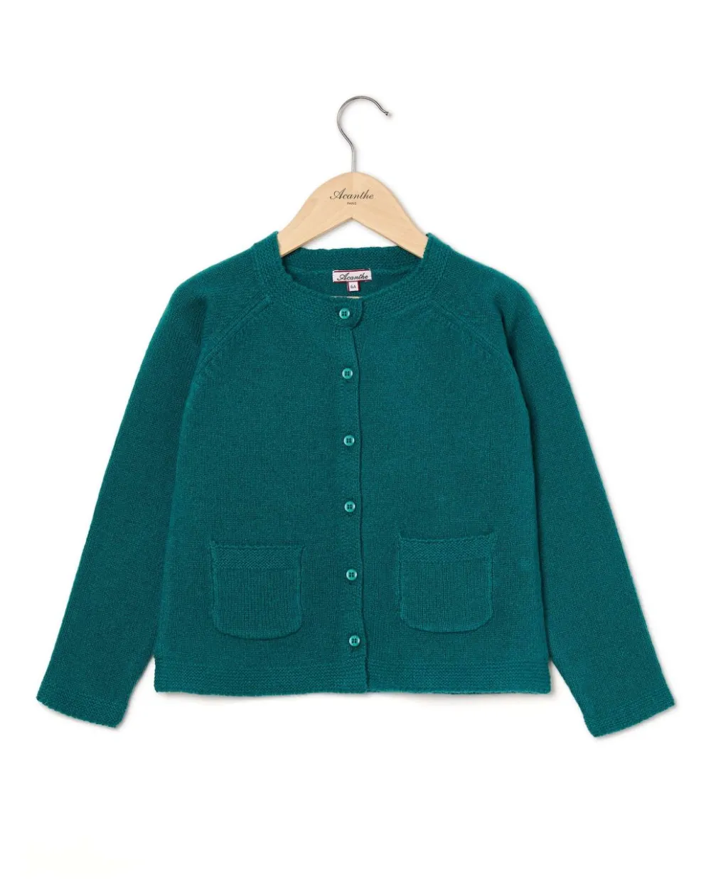 Cardigan en maille jersey avec fente de chaque côté. Boutonnage au milieu devant. Finition point mousse. Pure laine d’agneau.
