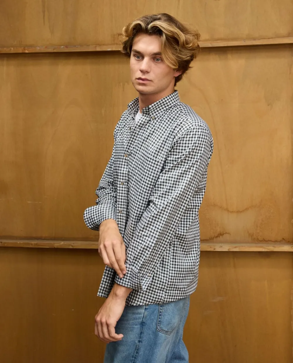 Chemise homme col boutonné. Coupe regular. Poche poitrine. 1 pli rond carrure dos. Pans arrondis au bas. 100% coton.