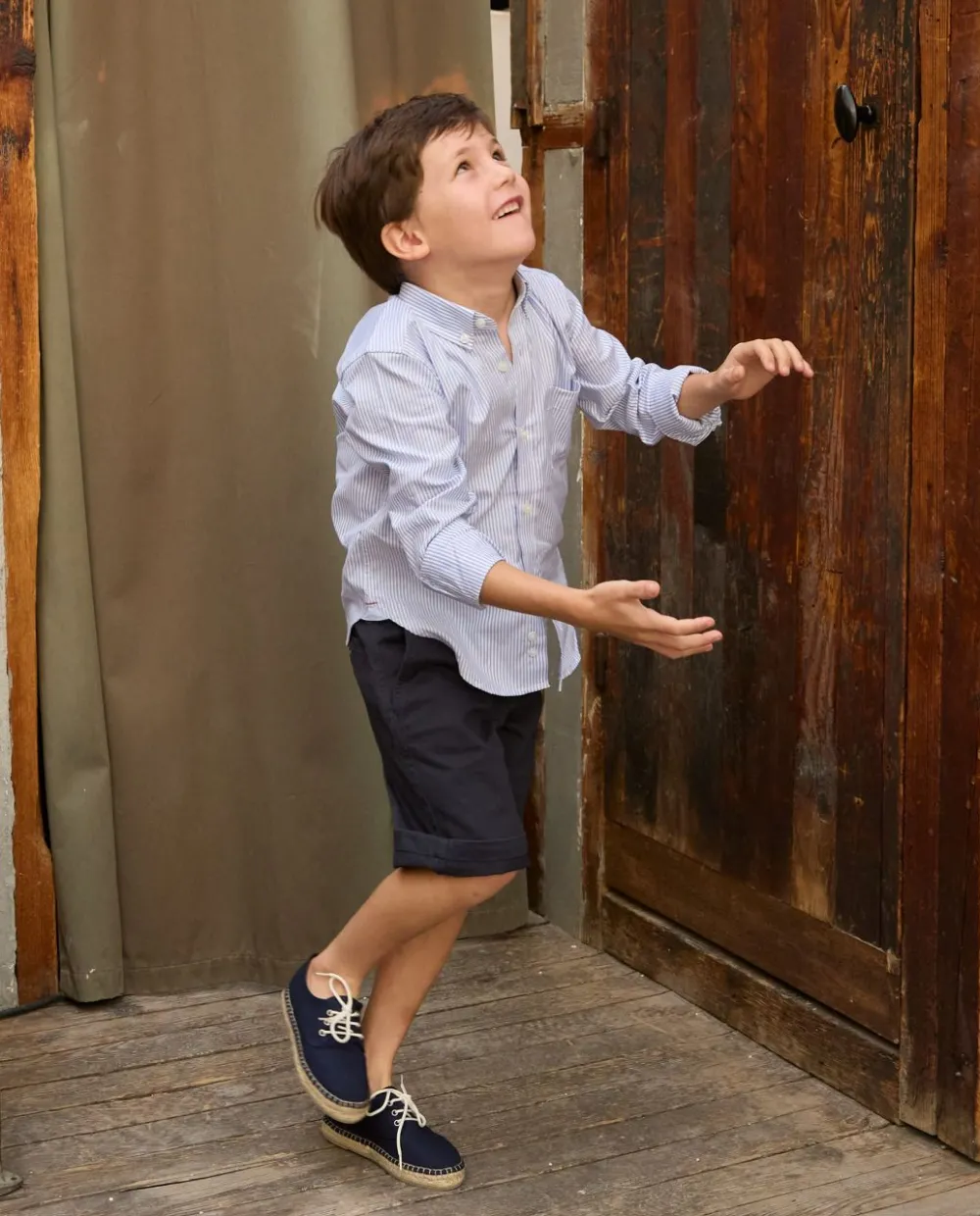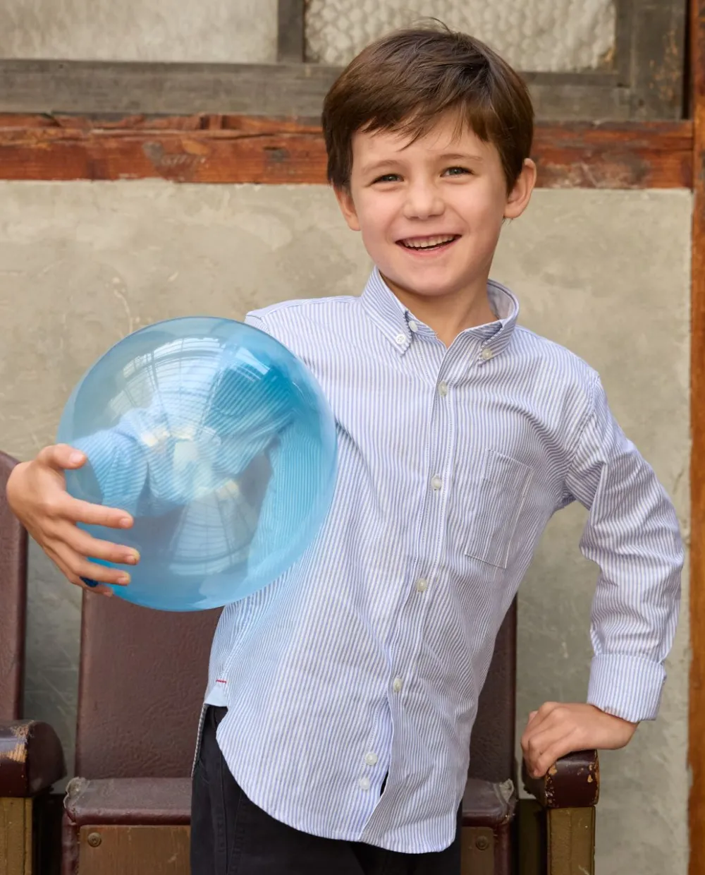 Chemise garçon en oxford rayé. Manches longues. Poche poitrine. Empiècement dos avec pli rond. Pans arrondis au bas.