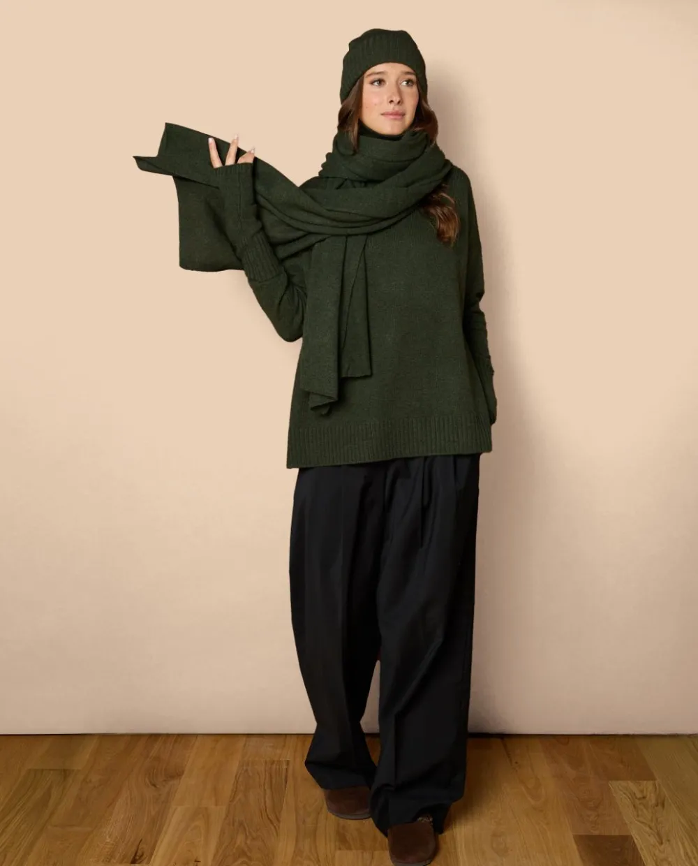 Echarpe longue et fine, maille jersey en cachemire double fil. Dimension 200 cm x 60 cm.