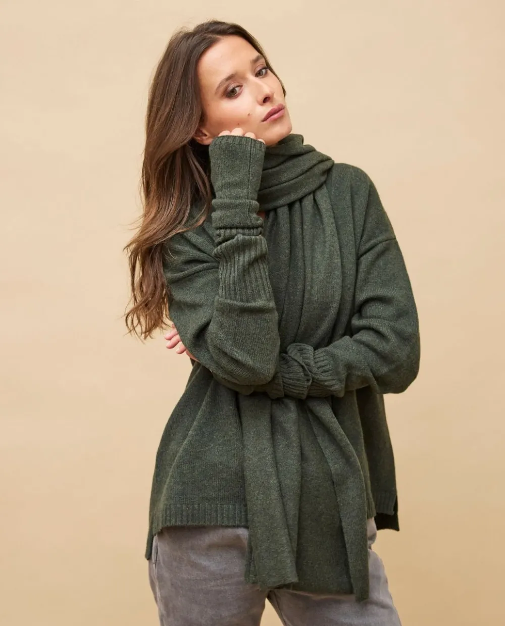 Acanthe Echarpe longue 100% cachemire Kaki Fashion