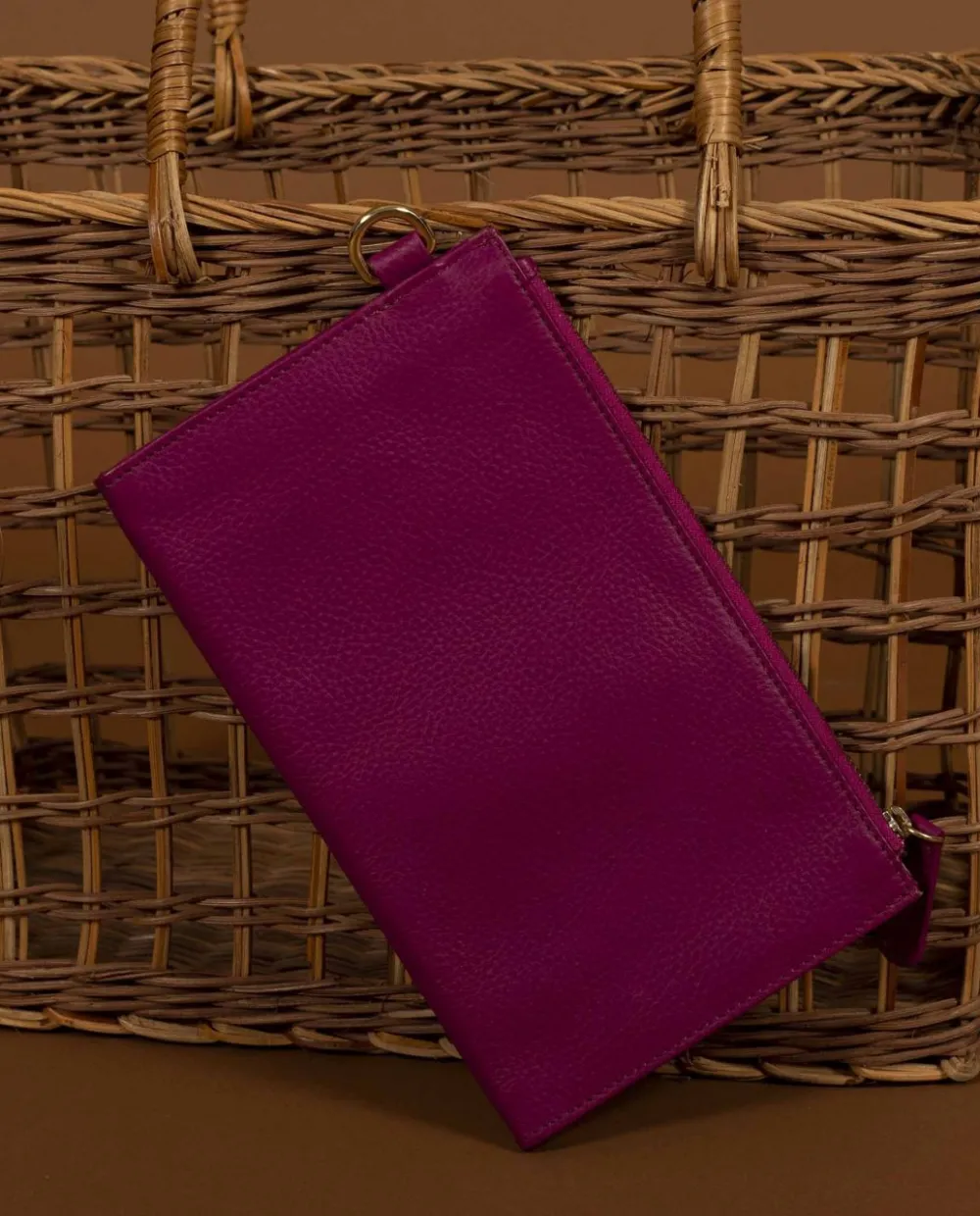 Pochette en cuir. Doublure intérieure coton. Dimension 14×22.