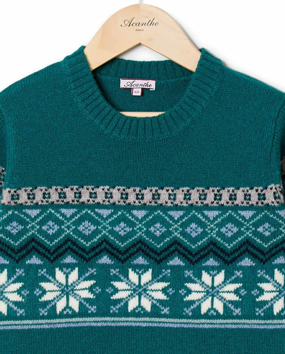 Pull jacquard encolure ronde. Manches longues. Finition bord-côtes. Pure laine d’agneau.
