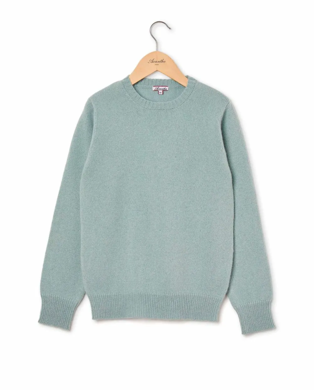 Pull col rond en jersey. Manches longues. Finition bord-côtes. Pure laine d’agneau.