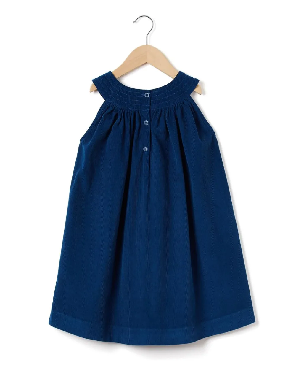 Robe trapèze en velours, empiècement arrondi aux épaules . Ouverture dos. Pur coton.